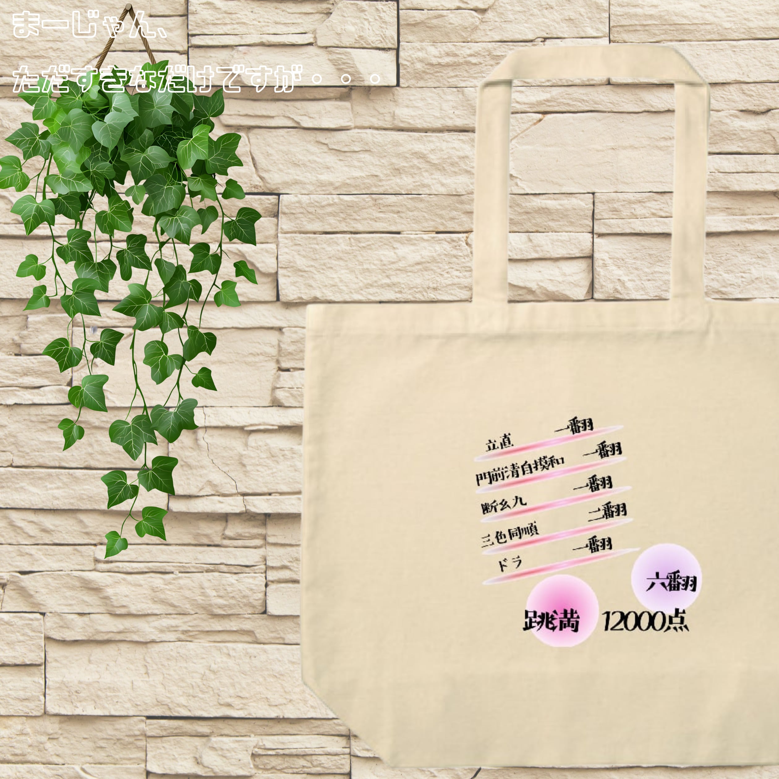 麻雀 -mahjong『跳満-haneman』プリントトートバッグ(L) NA