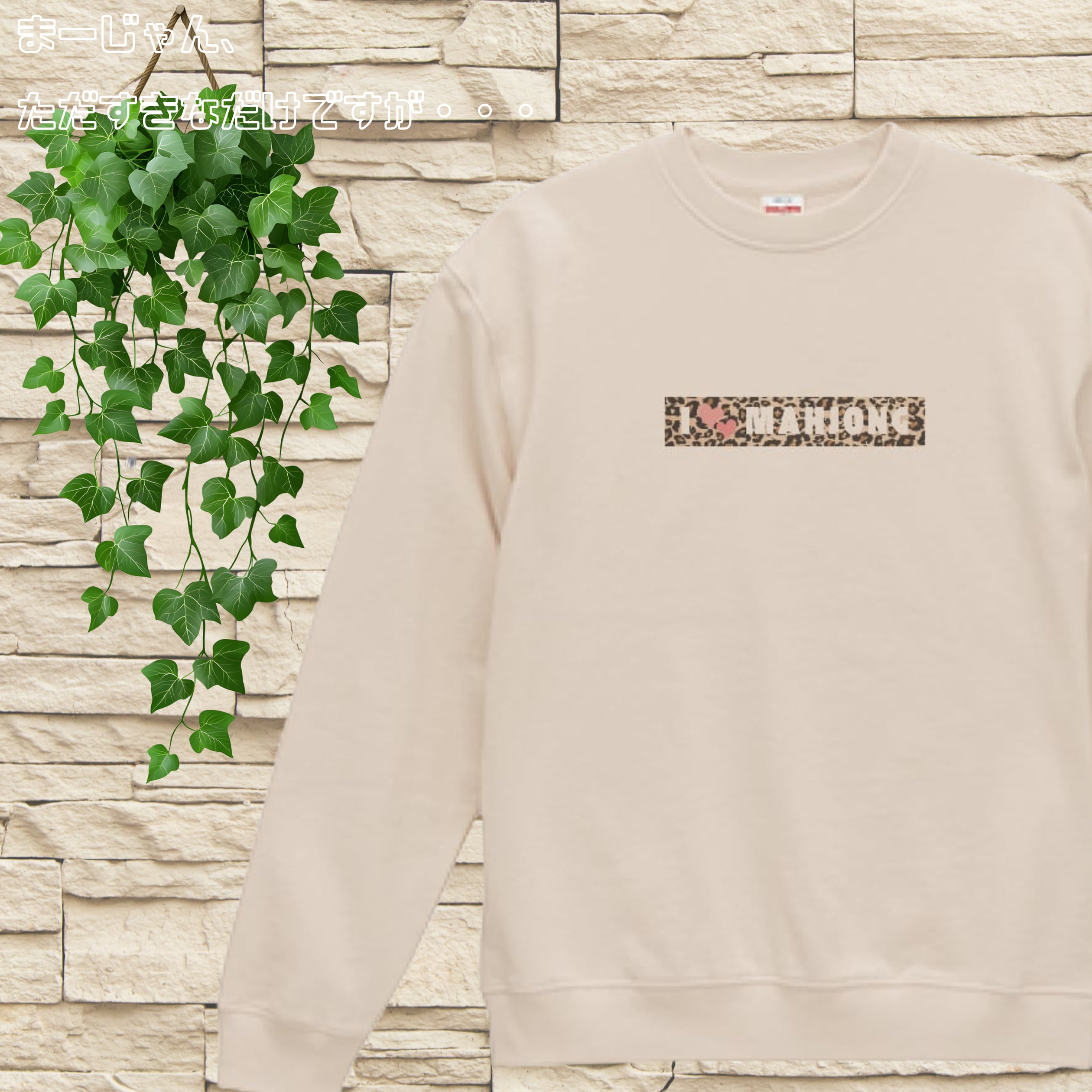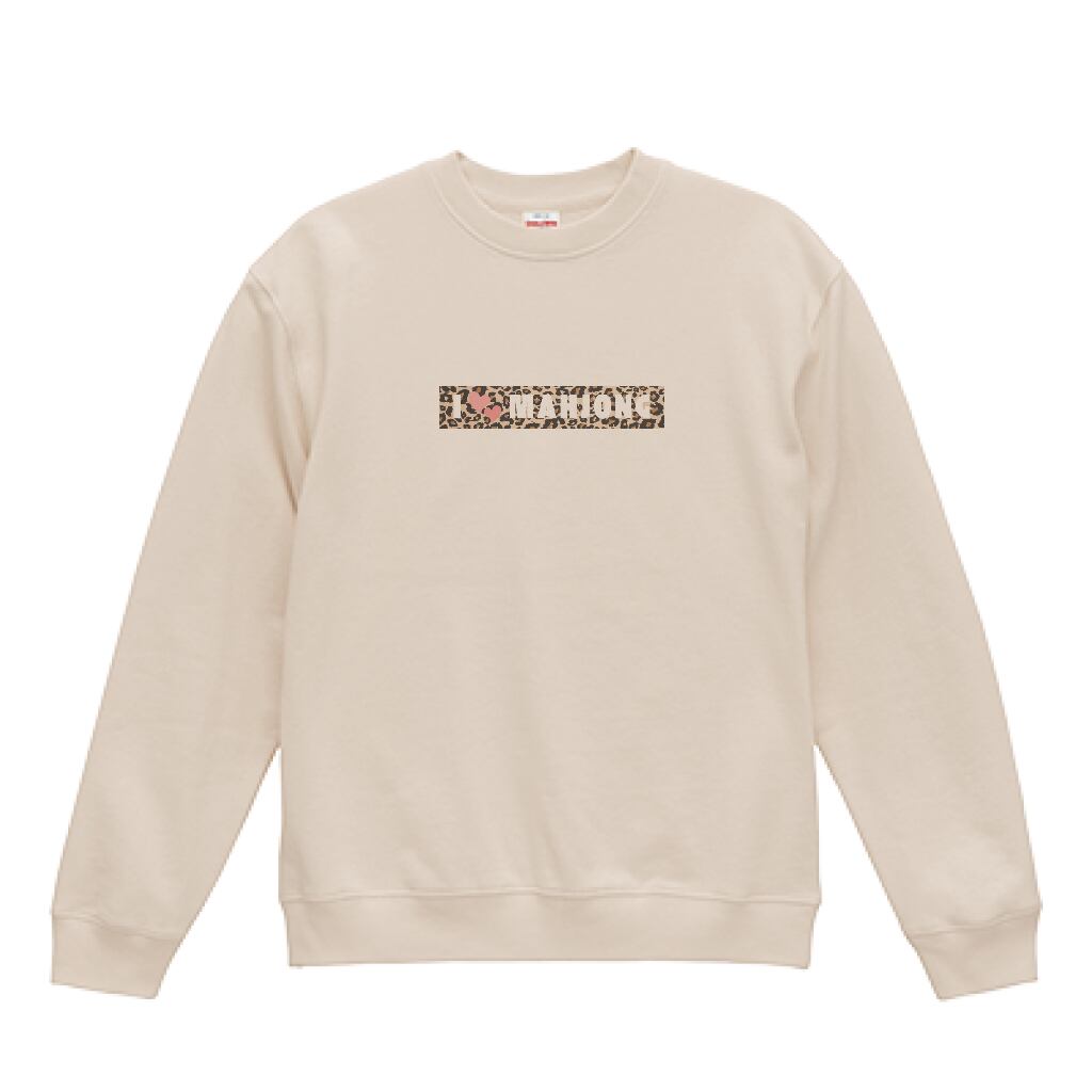麻雀 -mahjong-『I ♡ Mahjong』レオパード柄ボックスロゴプリントスウェット グレージュ