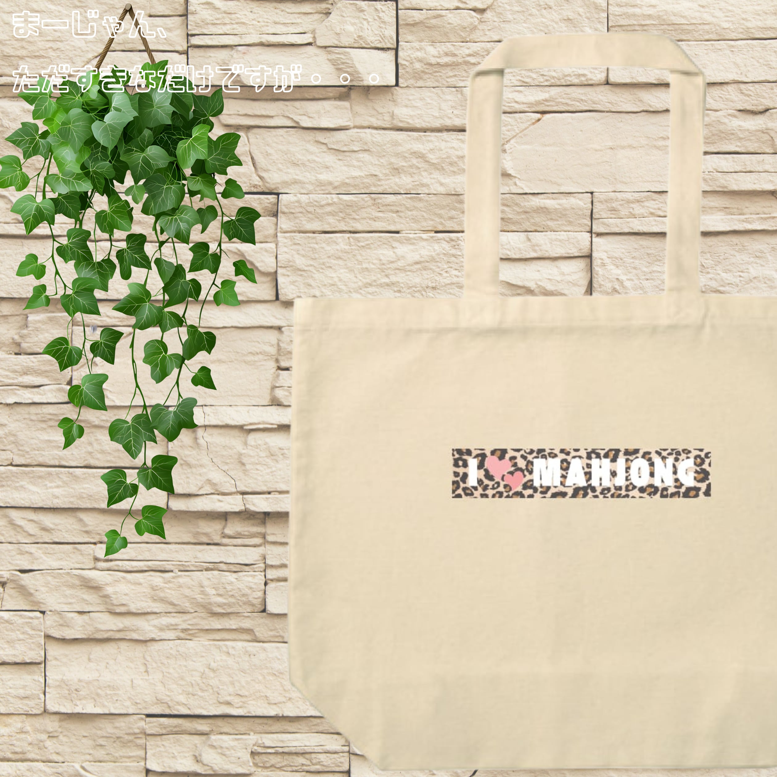 麻雀 -mahjong-『I ♡ Mahjong』レオパード柄ボックスロゴプリントトートバッグ(L) NA