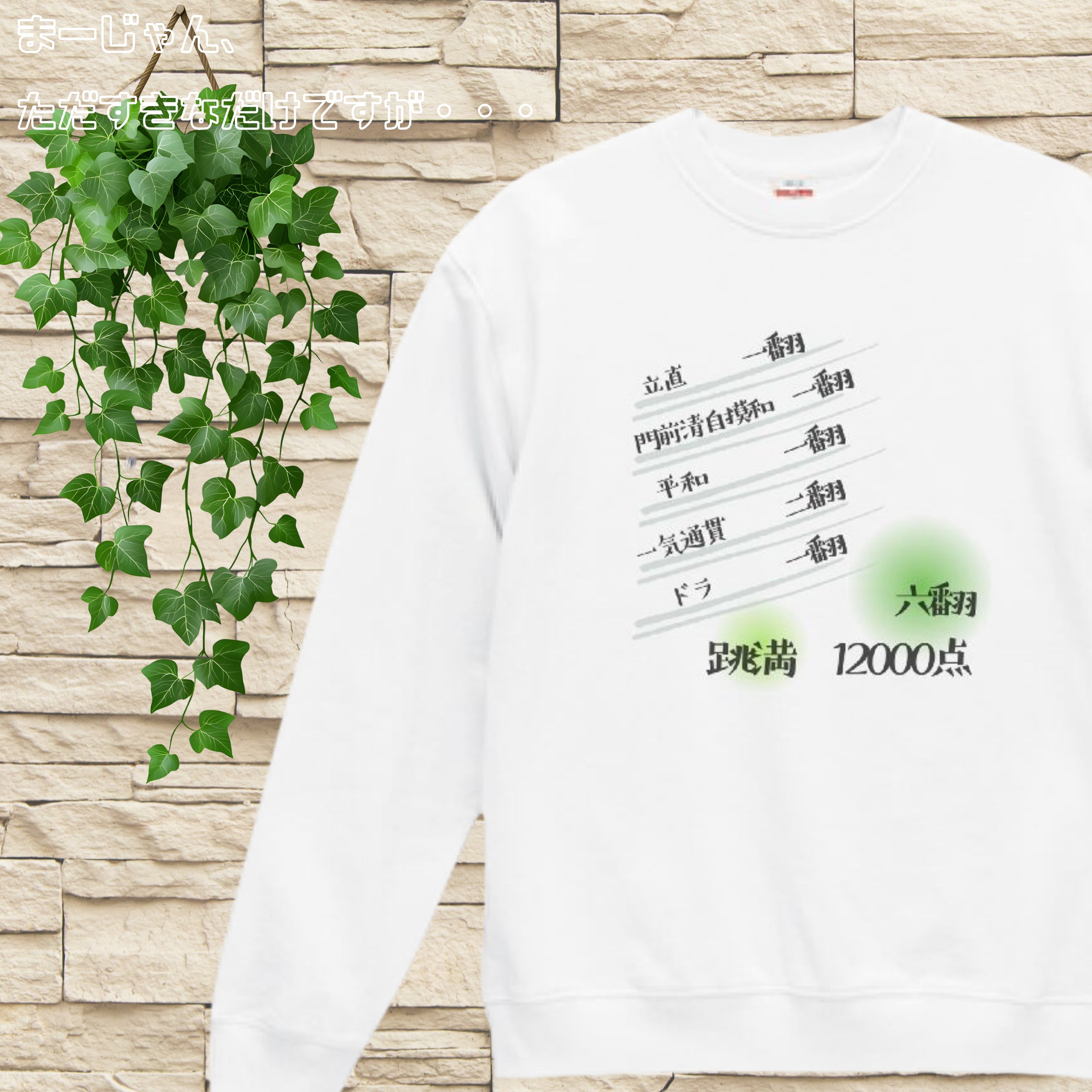 麻雀 -mahjong『跳満-haneman』-プリントスウェット2 WH