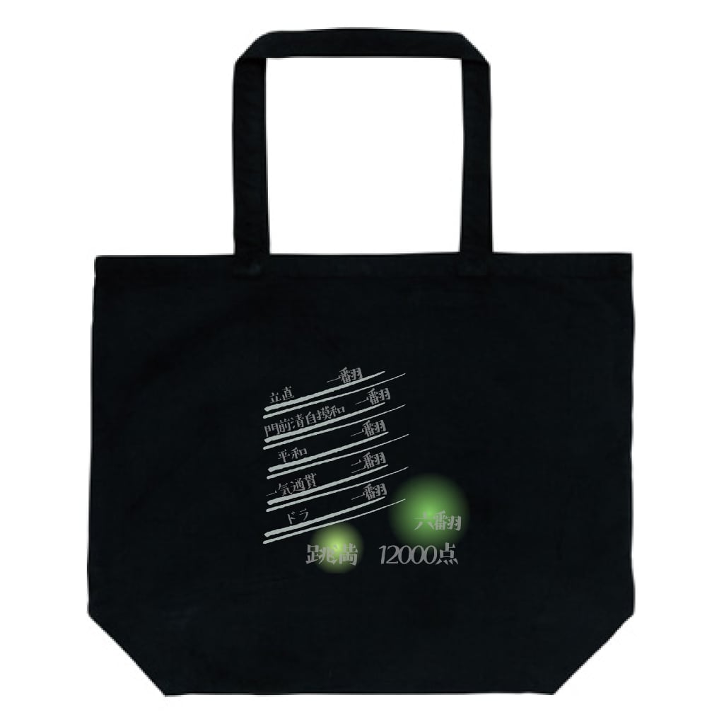 麻雀 -mahjong『跳満-haneman』プリントトートバッグ(L)2 BK
