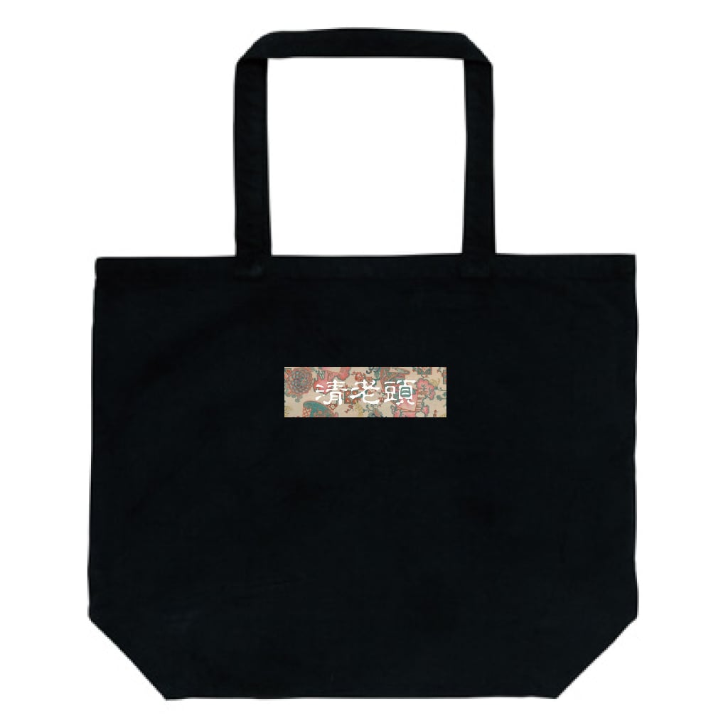麻雀 -mahjong-『清老頭』和柄プリントトートバッグ(L) BK