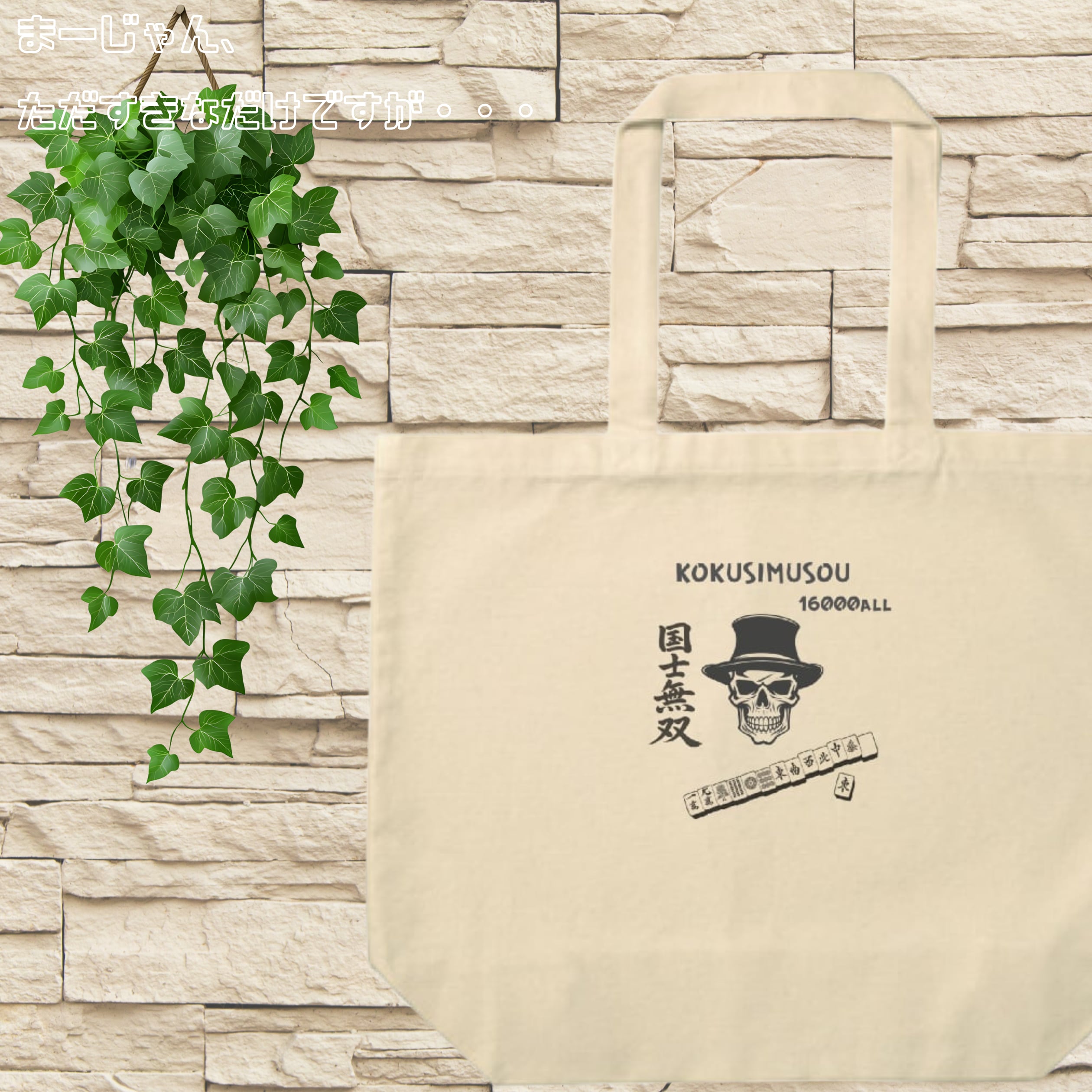 麻雀 -mahjong-『国士無双』スカルデザインプリントトートバッグ(L) NA