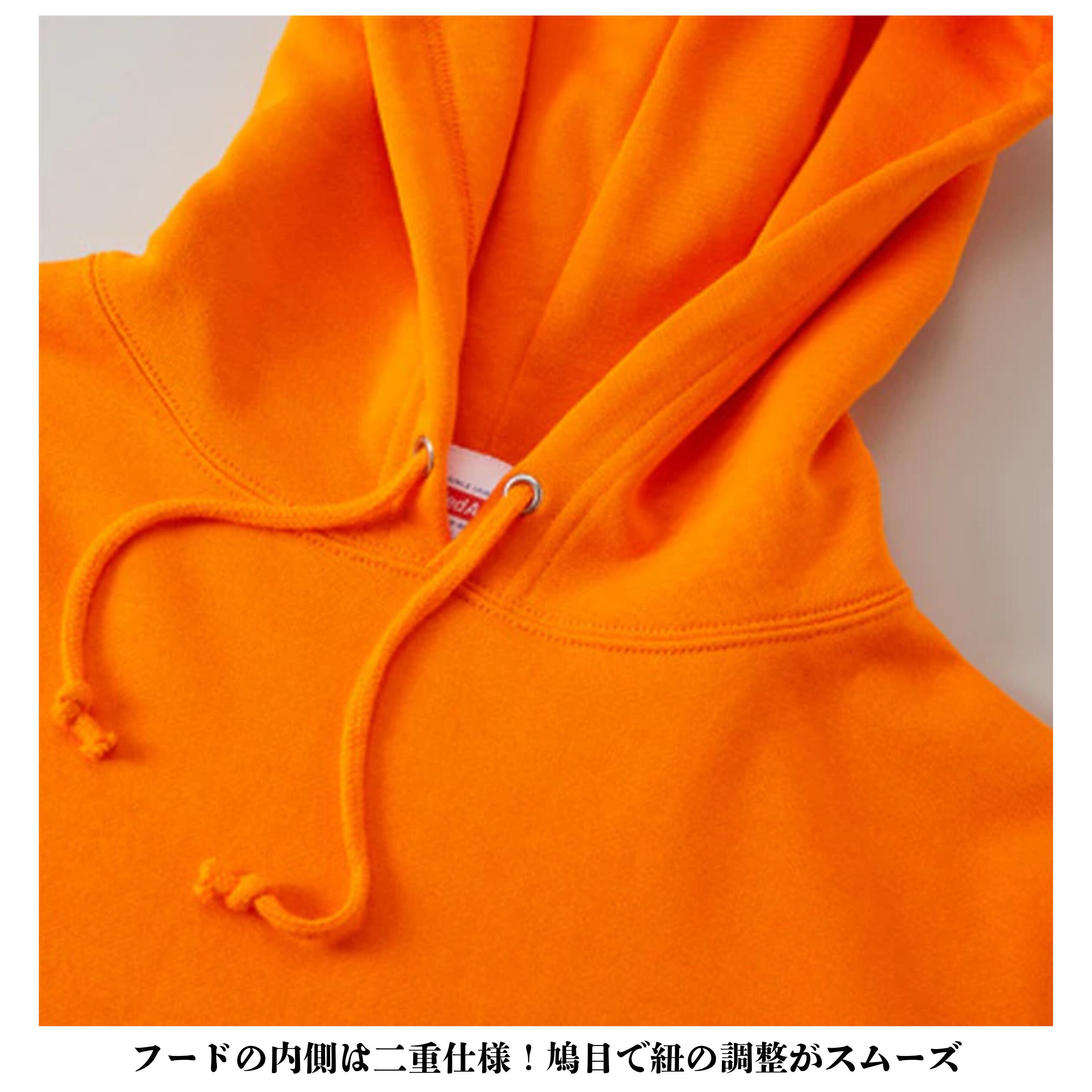 10.0oz(オンス)と程よい厚さで、フードは二重生地のしっかりした作りになっています。