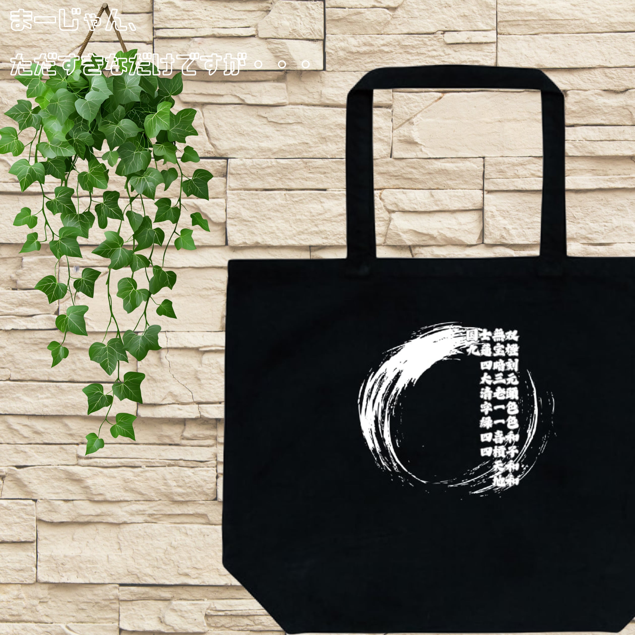 麻雀-mahjong- 『役満×アート』デザイン2 プリントトートバッグ(L) ブラック