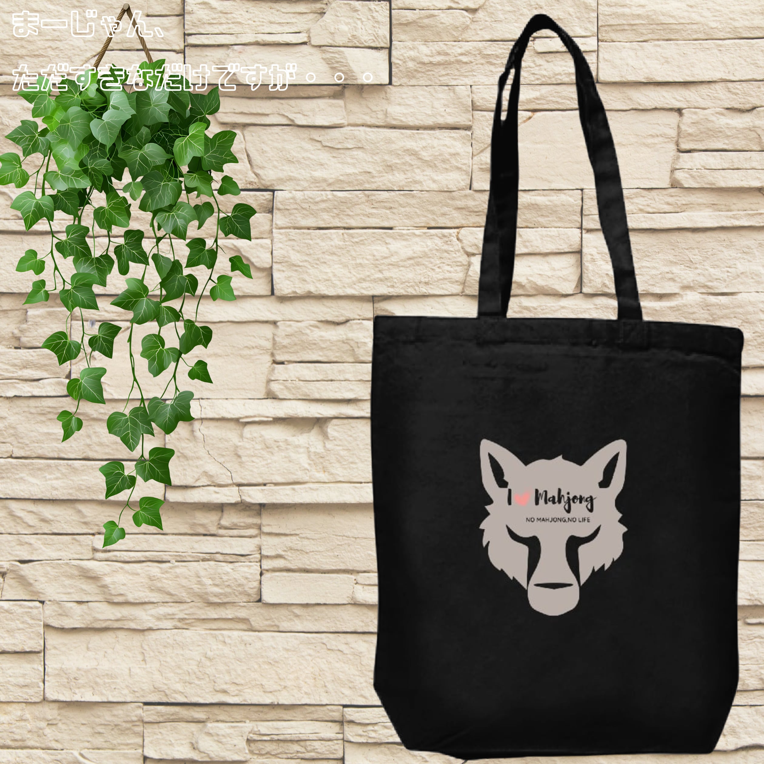 オオカミモチーフに「I ♡ mahjong」のメッセージ、