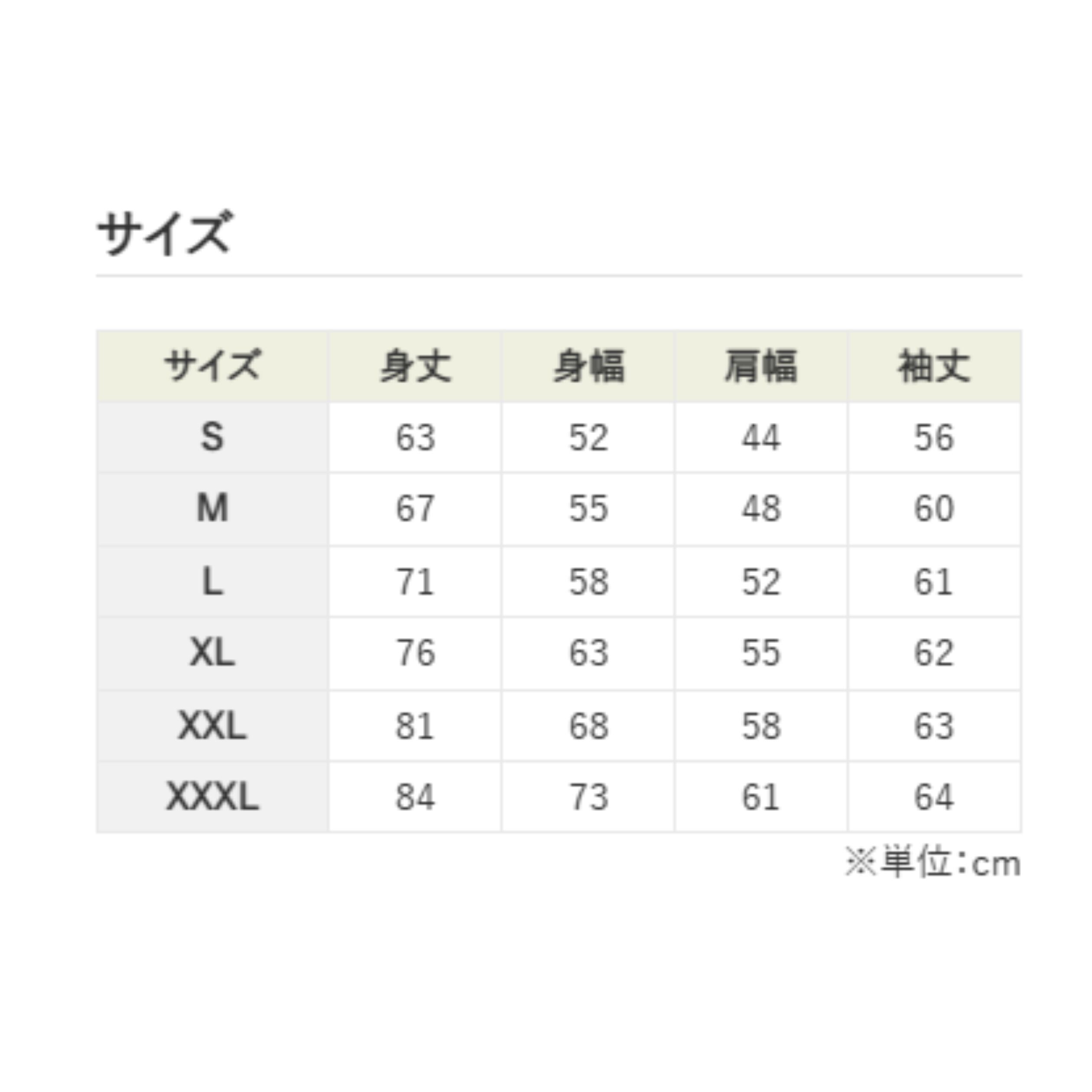 身丈 身幅 肩幅 袖丈 ※単位:cm