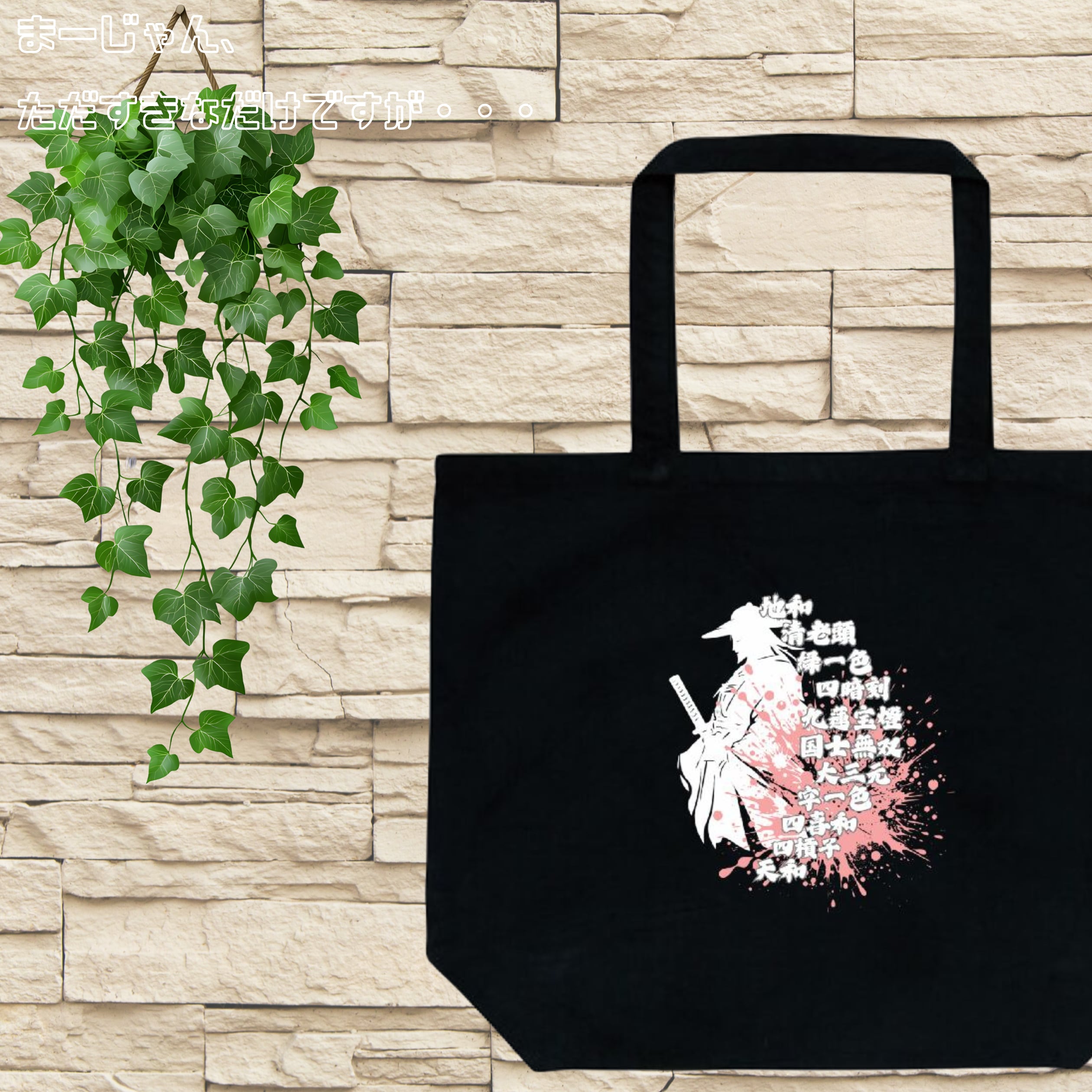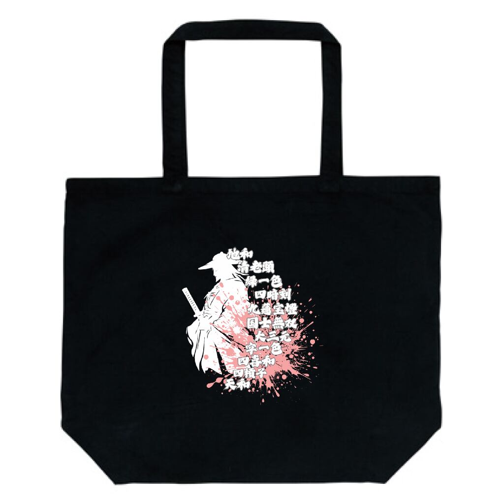 麻雀-mahjong- 『役満×和風アート』デザイン プリントトートバッグ(L) ブラック