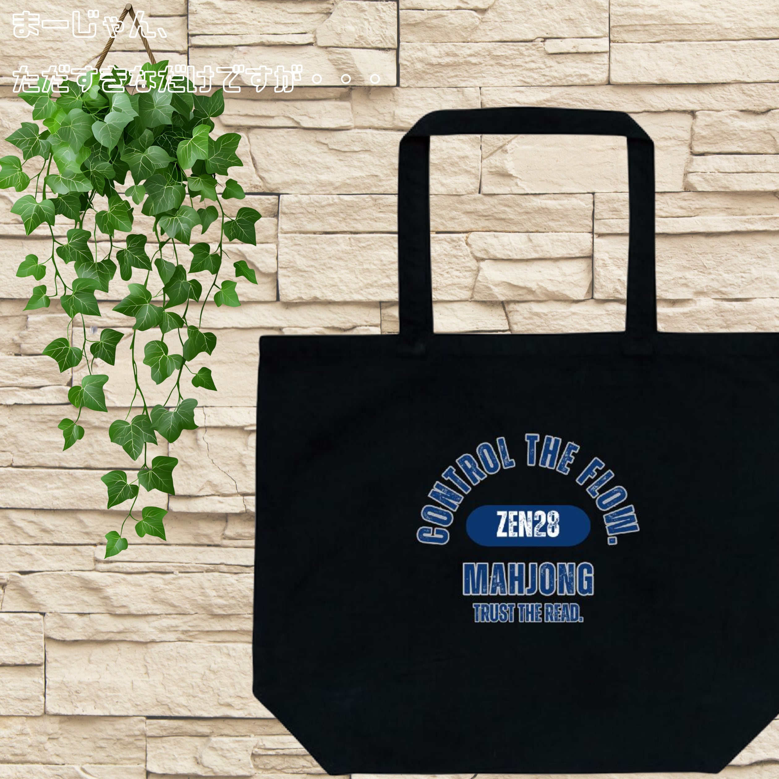 麻雀-mahjong- 『MAHJONG MIND』2 プリントトートバッグ(L) ブラック