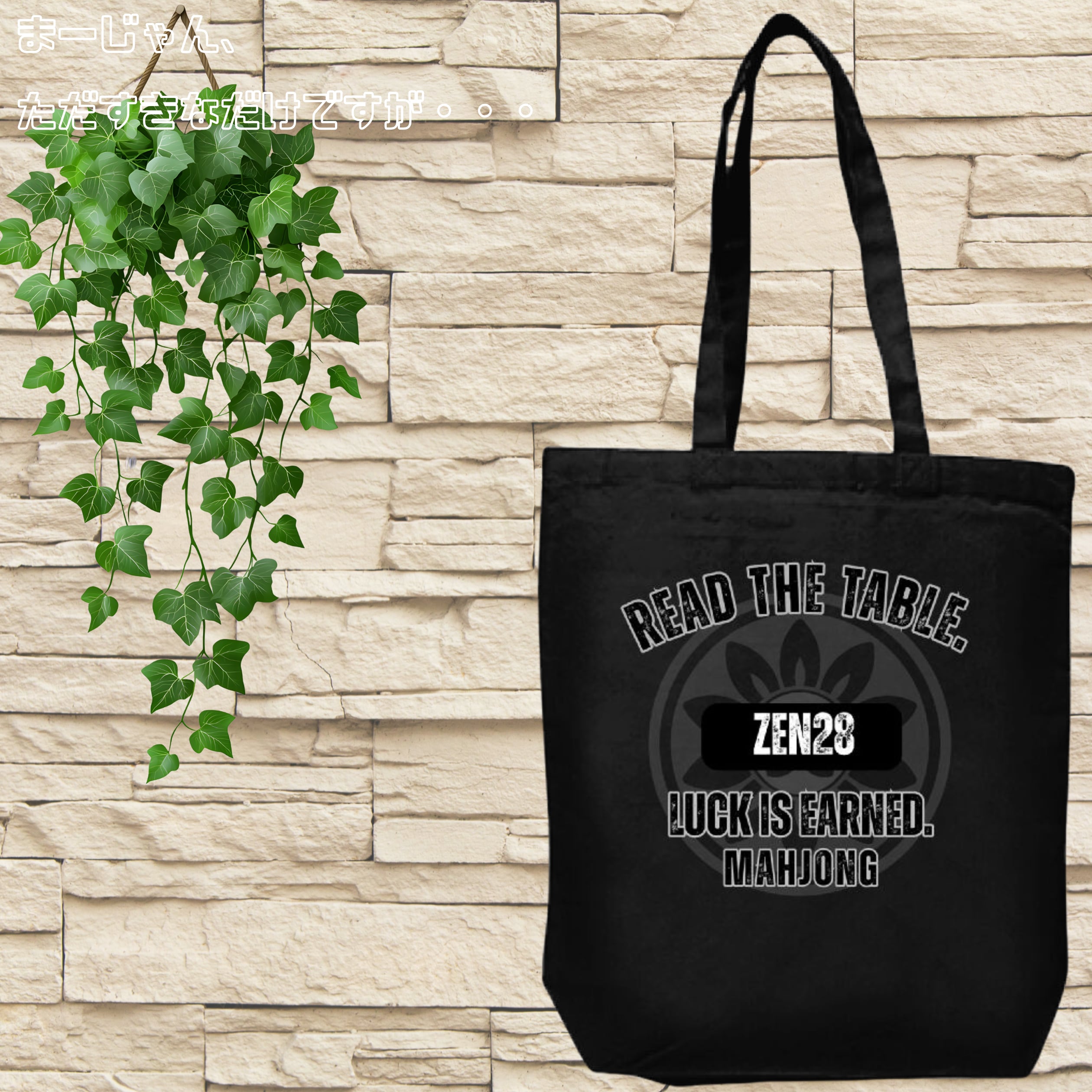 麻雀-mahjong- 『MAHJONG MIND』4 プリントトートバッグ(M) ブラック