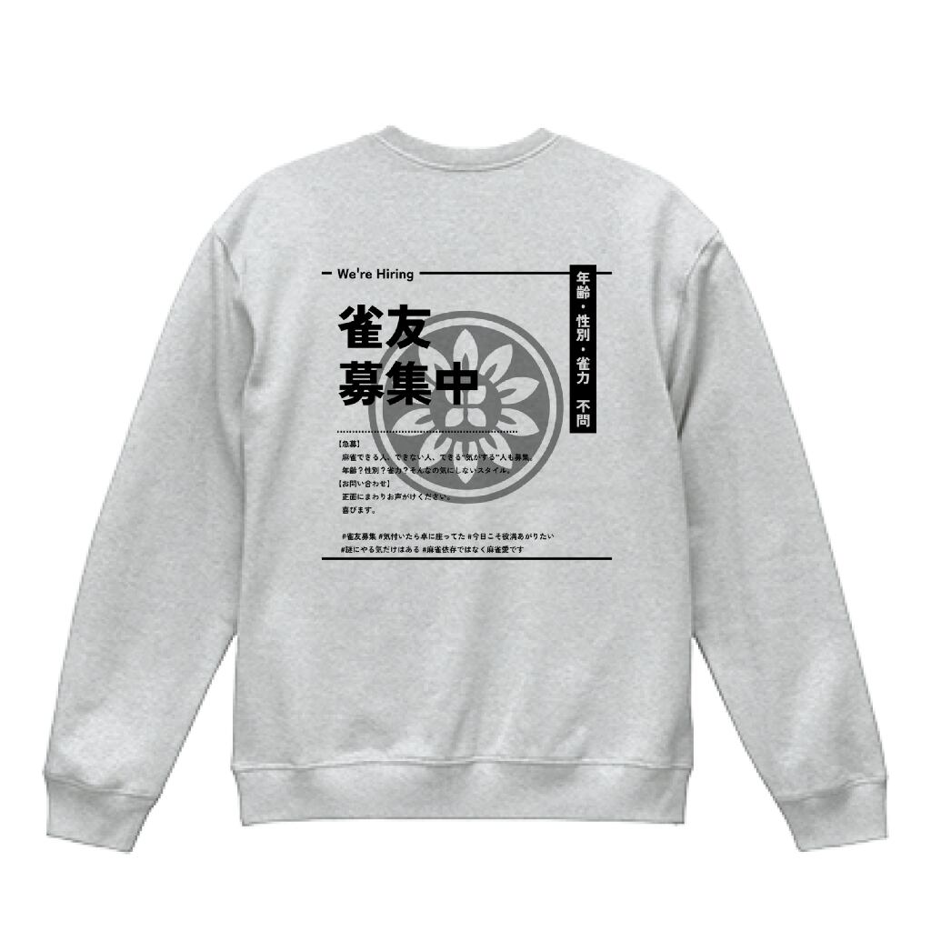 麻雀-mahjong- 『雀友募集中』 バックプリントスウェット アッシュ