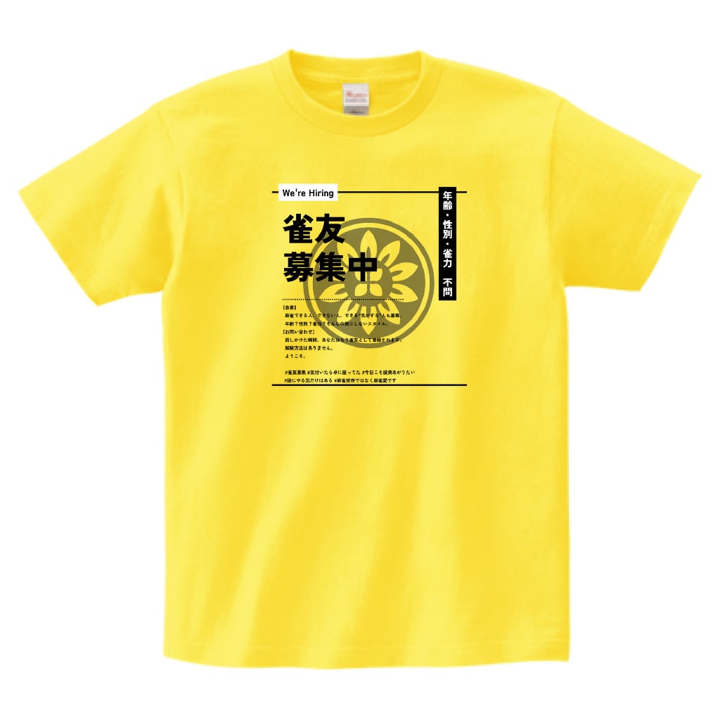 麻雀-mahjong- 『雀友募集中』 プリントTシャツ イエロー