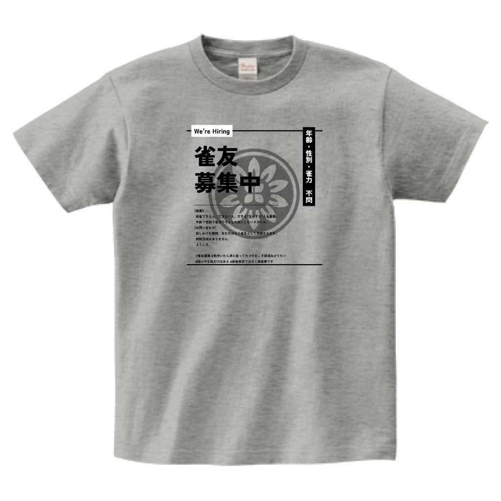 麻雀-mahjong- 『雀友募集中』 プリントTシャツ グレー