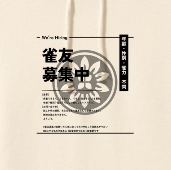 麻雀-mahjong- 『雀友募集中』 スウェットパーカー ナチュラル
