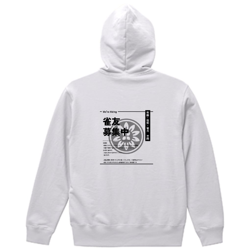 麻雀-mahjong- 『雀友募集中』 バックプリント スウェットパーカー ホワイト