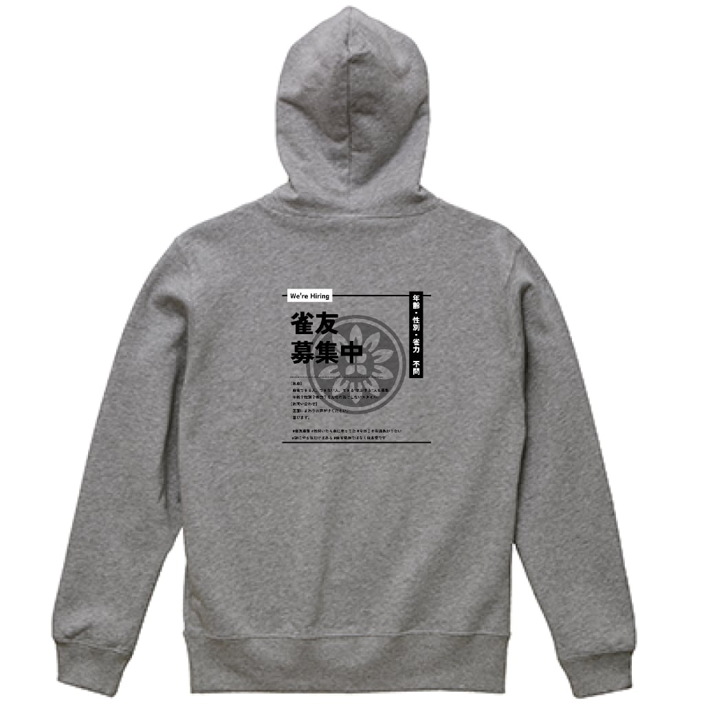 麻雀-mahjong- 『雀友募集中』 バックプリント スウェットパーカー グレー