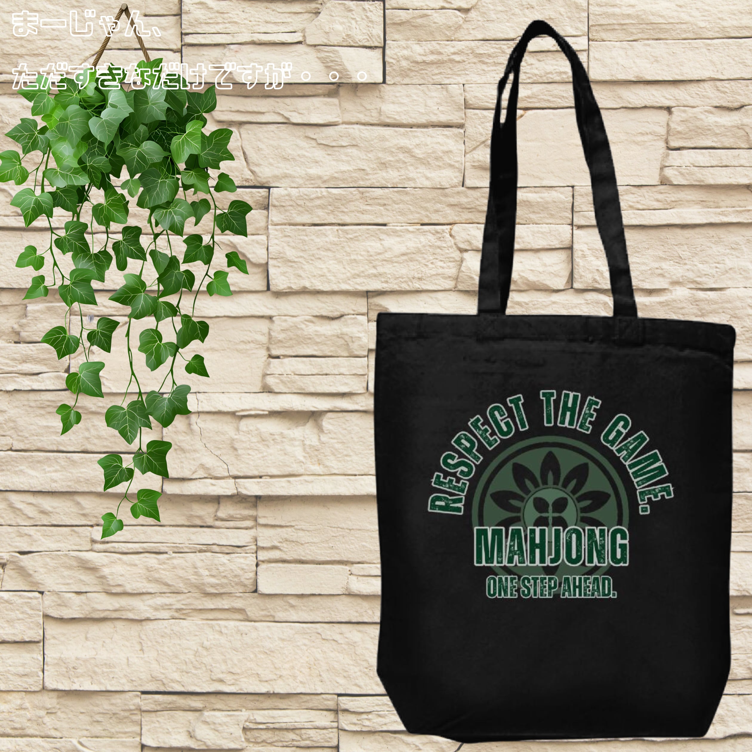 麻雀-mahjong- 『MAHJONG MIND』9 プリントトートバッグ(M) ブラック