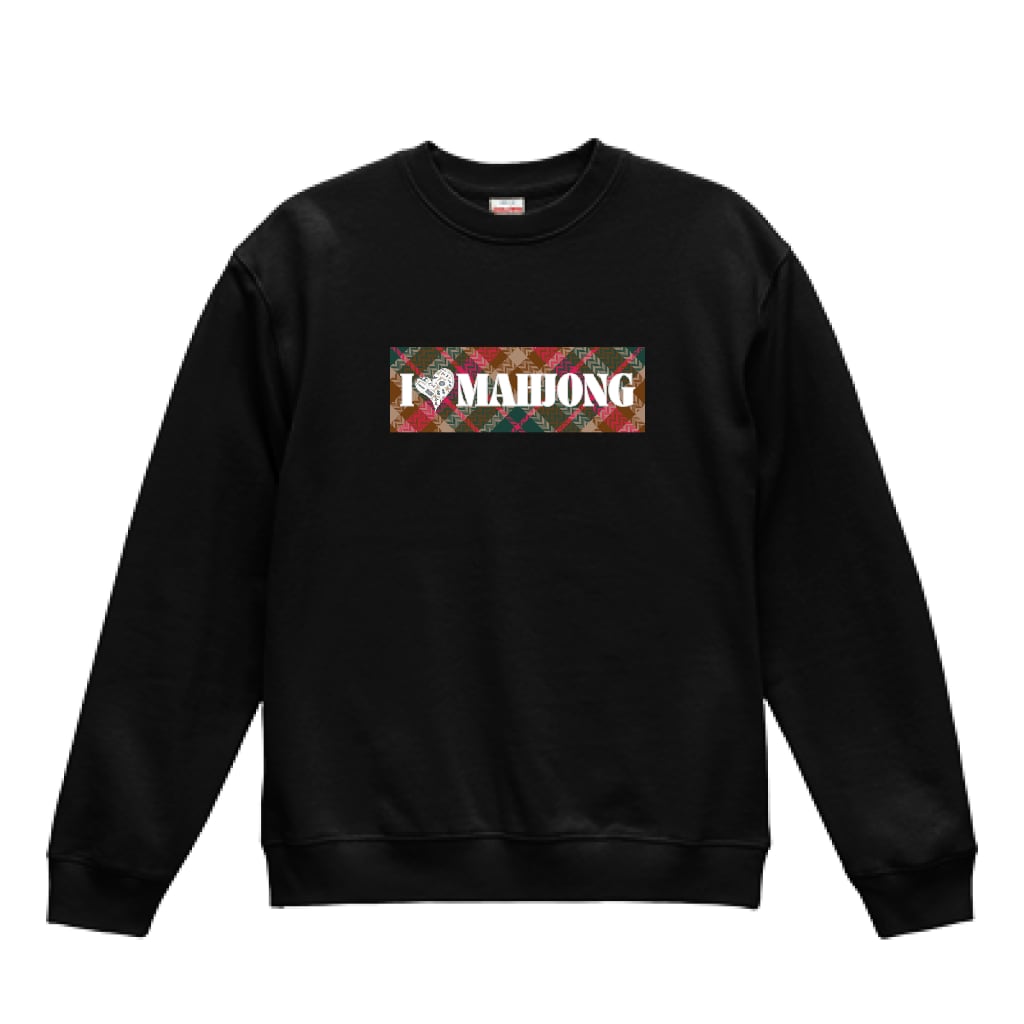 麻雀 -mahjong-『I ♡ Mahjong』タータンチェック柄ボックスロゴ スウェット ブラック