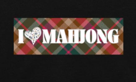 「I ♡ Mahjong」の文字をコンパクトなタータンチェック柄のボックスデザインで配置し、シンプルで使いやすい麻雀モチーフのデザインです。
