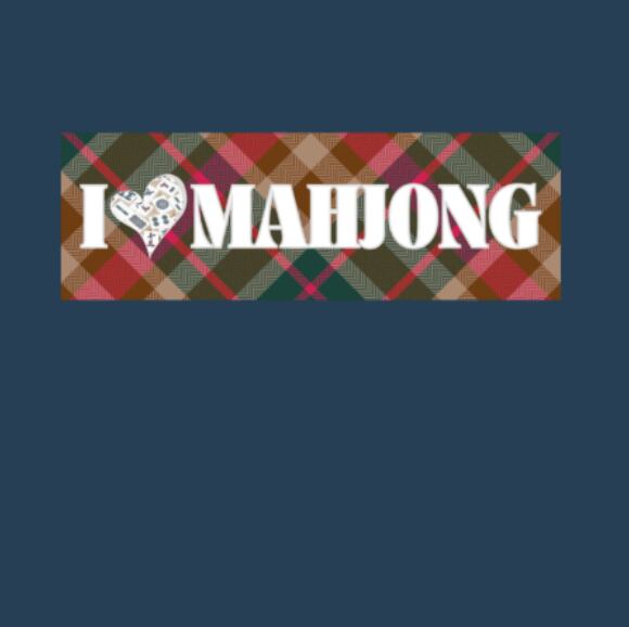 「I ♡ Mahjong」の文字をコンパクトなタータンチェック柄のボックスデザインで配置し、シンプルで使いやすい麻雀モチーフのデザインです。