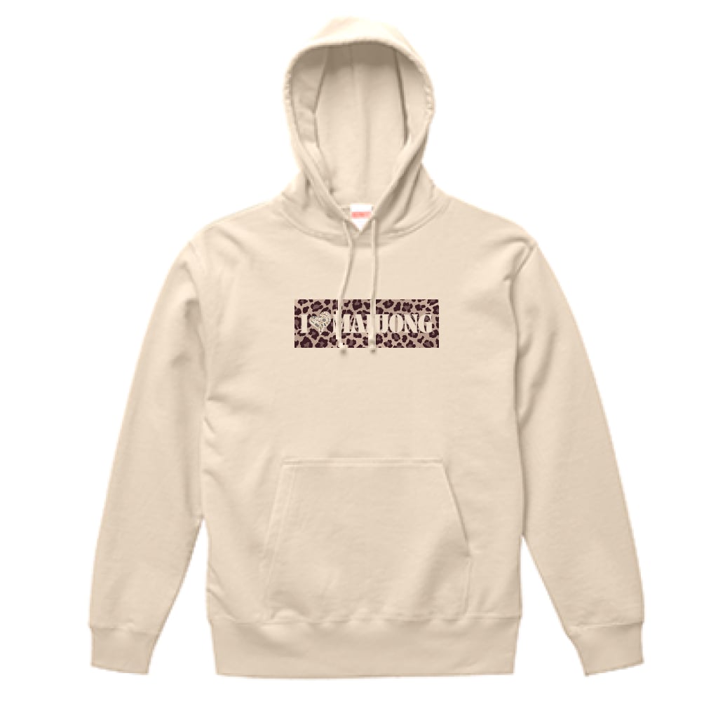 麻雀 -mahjong-『I ♡ Mahjong』レオパード柄ボックスロゴ2 スウェットパーカー ナチュラル
