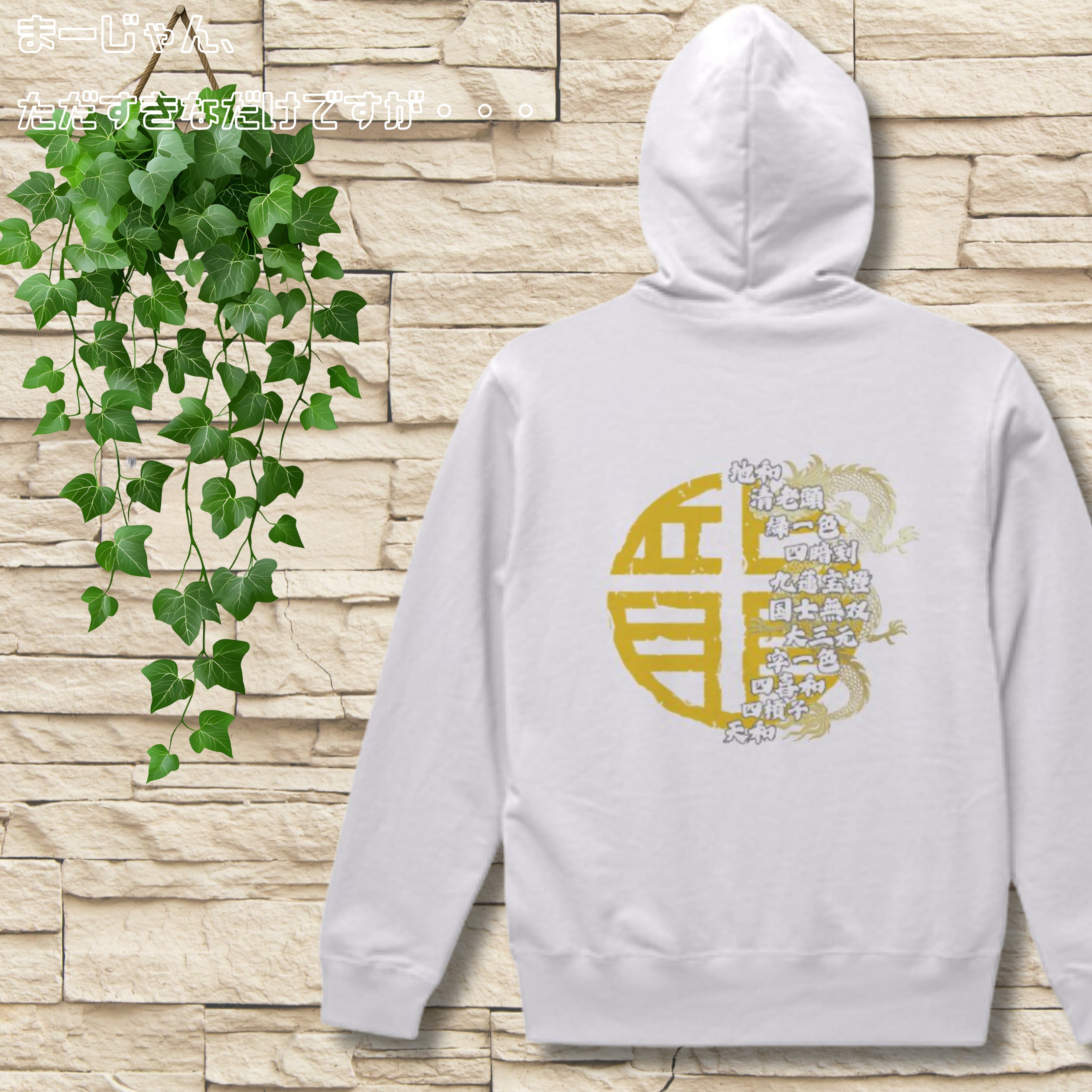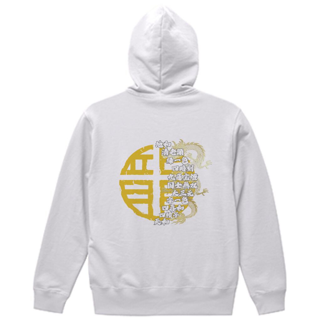 麻雀-mahjong- 『役満×和風アート』 バックプリント スウェットパーカー ホワイト