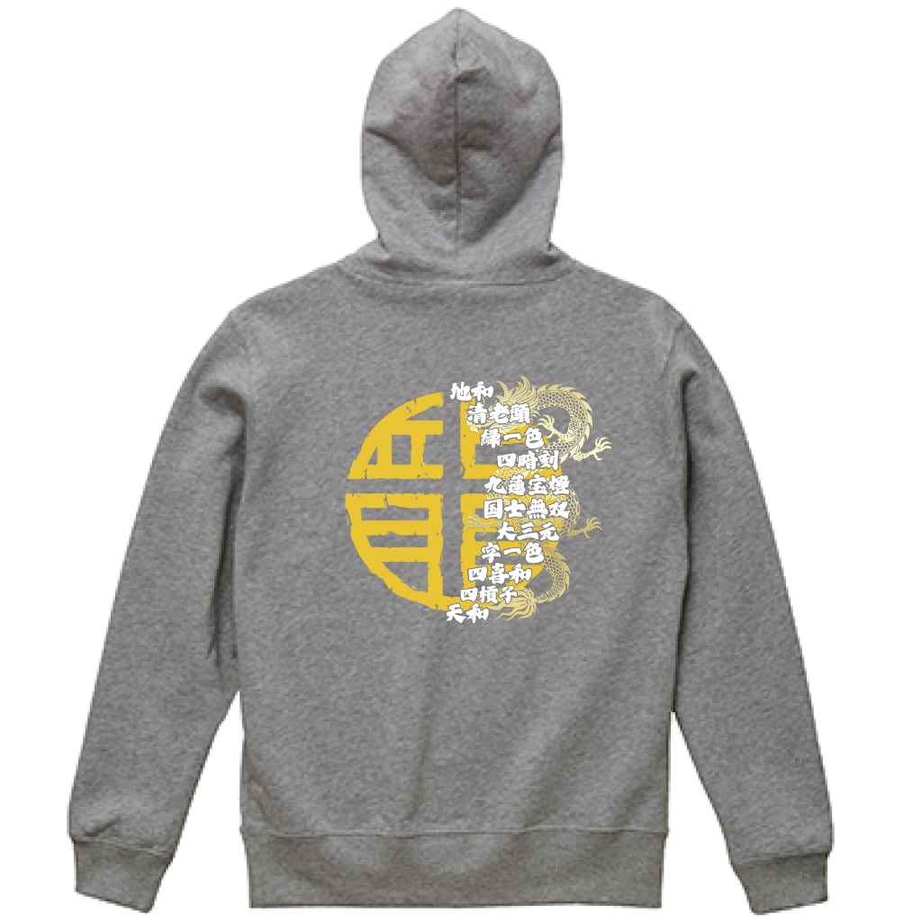 麻雀-mahjong- 『役満×和風アート』 バックプリント スウェットパーカー グレー