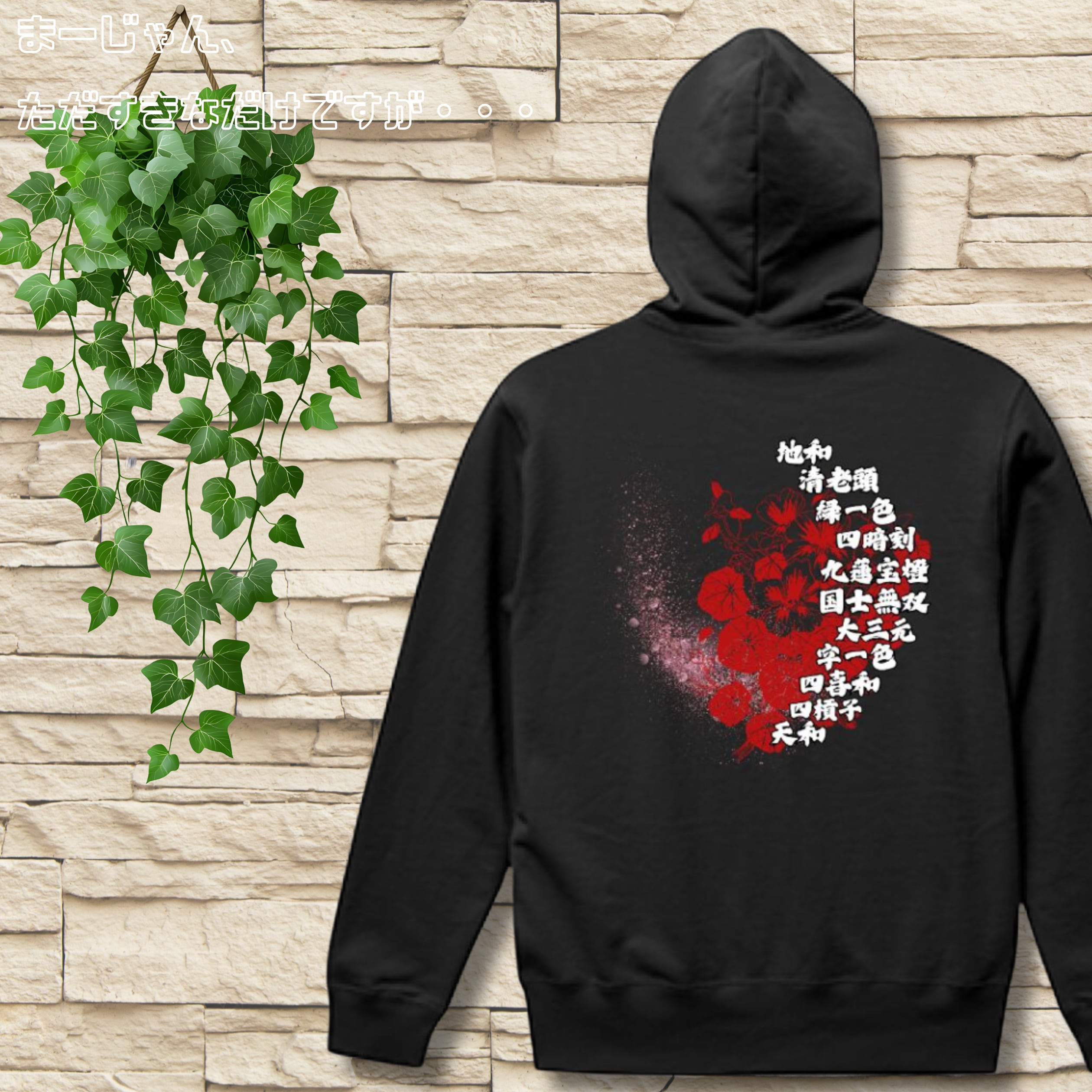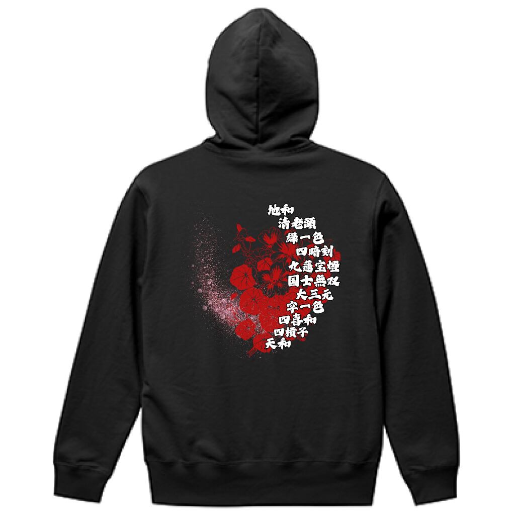 麻雀-mahjong- 『役満×和風アート』 バックプリントスウェットパーカー ブラック