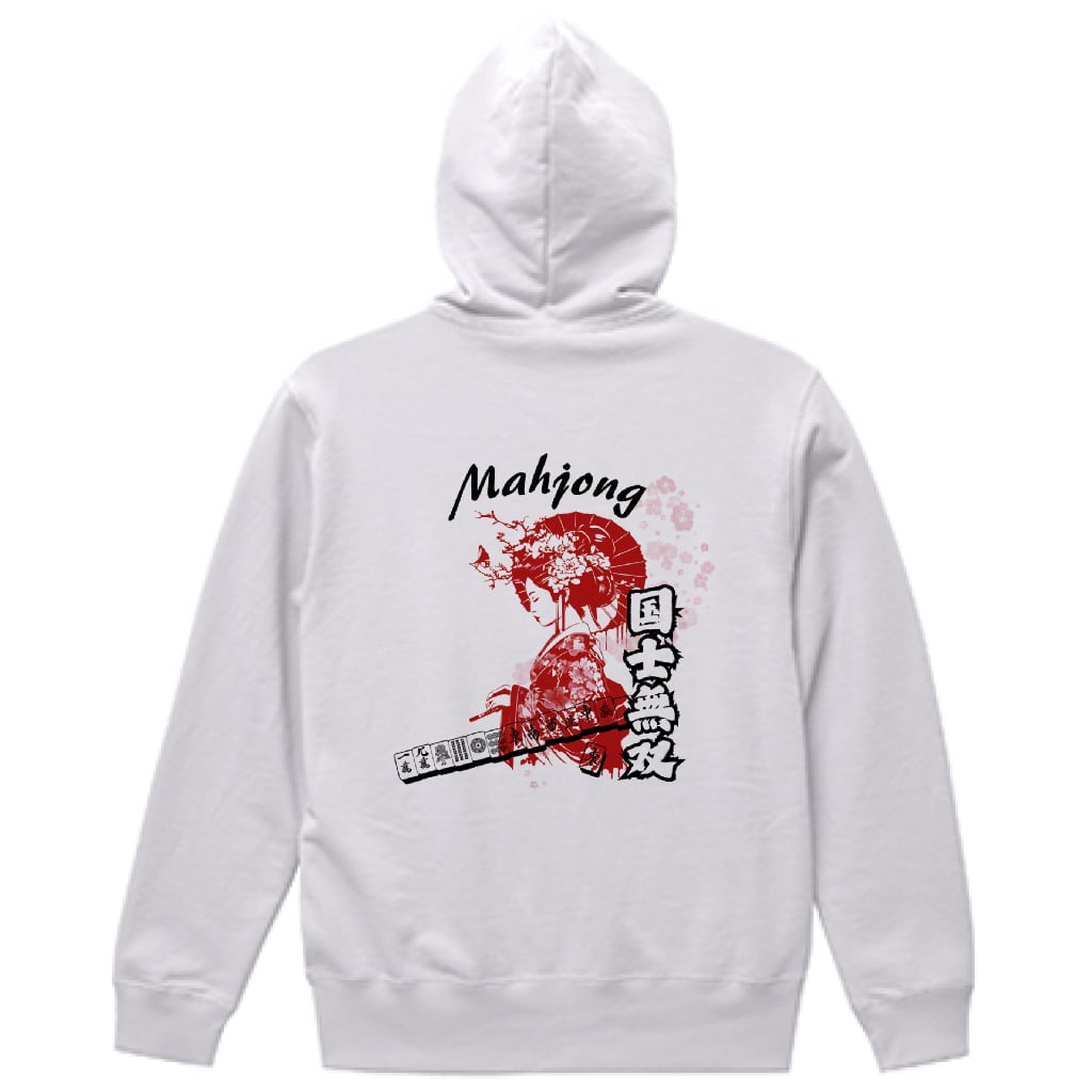 麻雀 -mahjong-『国士無双-SAKURA』 バックプリントスウェットパーカー ホワイト