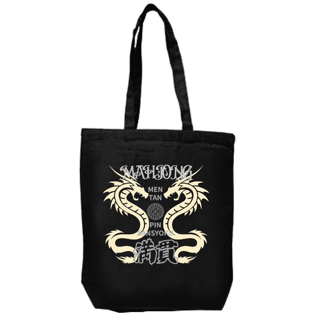 麻雀-mahjong- 『満貫-mangan-』プリントトートバッグ(M) ブラック
