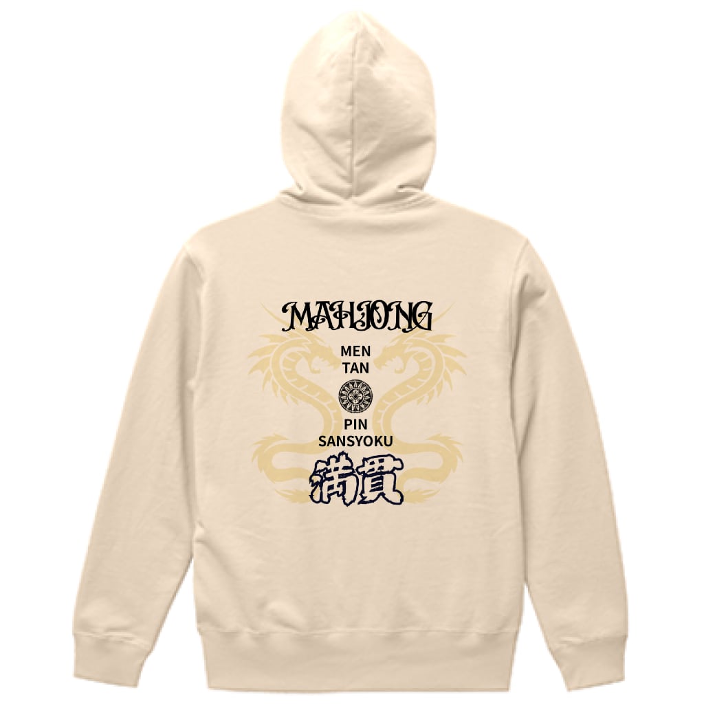 麻雀-mahjong- 『満貫-mangan-』バックプリントスウェットパーカー ナチュラル