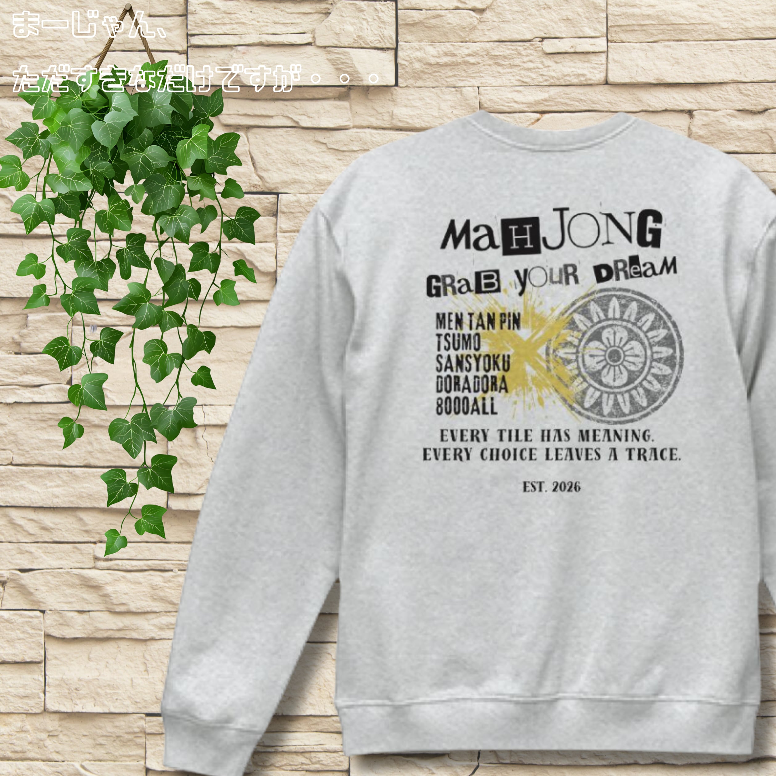 麻雀-mahjong- 『麻雀×punk』バックプリントスウェット アッシュ